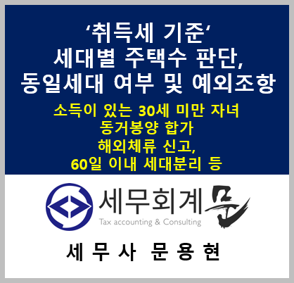 취득세 기준 주택수 계산시, 동일세대 여부 판단 및 예외조항