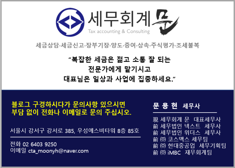 안녕하세요. <세무회계 문> 문용현 세무사입니다.