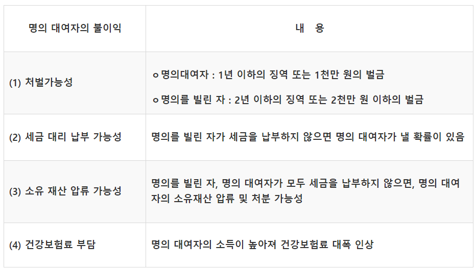 지금까지 사업자 명의대여시, 세법상 문제점에 대해서 알아보았습니다.