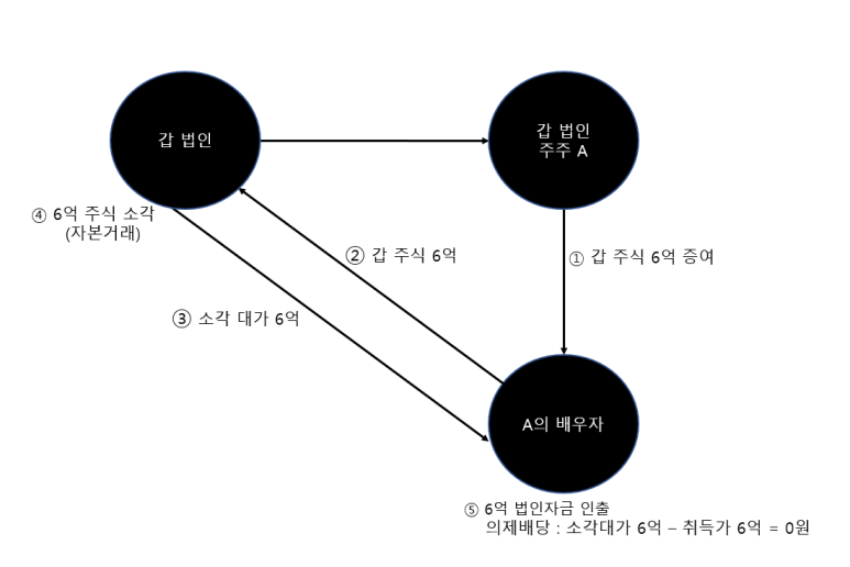 이러한 방식으로 증여받은 배우자는 법인으로부터 소각대가로 받은 자금을 통해서 해당 법인에 대한 가수금 반환 등의 여러 가지 자금출처로 활용할 수 있습니다.