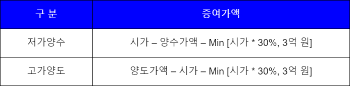 자산을 시가의 70%이하로 양수하거나 시가와 양수가액의 차액이 3억 이상인 경우