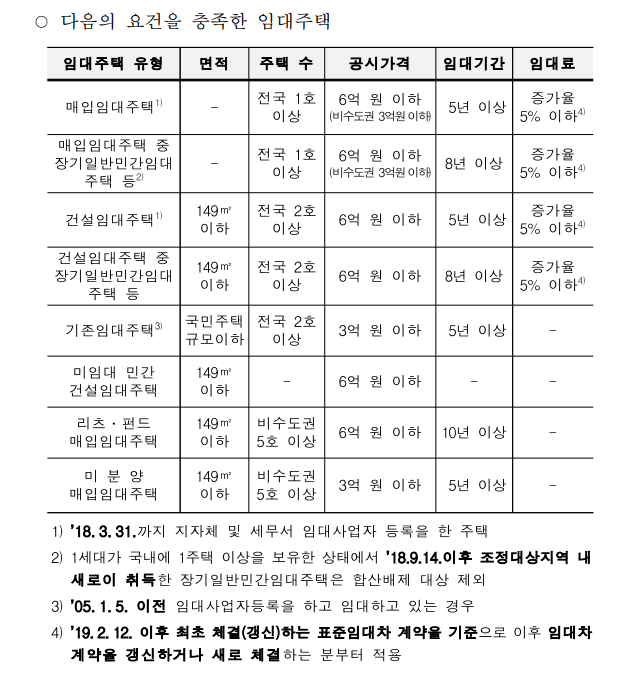 주택임대사업자가 아래의 요건을 모두 충족한 주택을 보유하고 있는 경우에는 종합부동산세를 계산함에 있어 해당 주택을 합산 배제합니다. 합산 배제한다는 의미는 비과세로 이해하시면 됩니다.