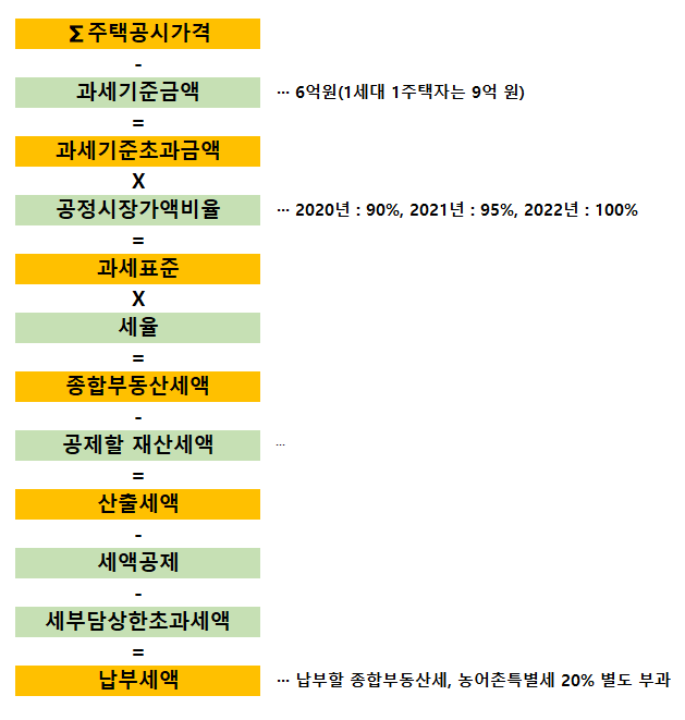 종합부동산세는 재산세와 달리 주택공시가격을 인별로 합산한 후 과세기준금액을 초과한 부분에 대해서만 과세를 하고 있습니다.