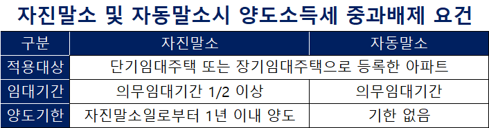 주택임대사업자의 양도소득세 중과배제(자진말소, 자동말소 등)
